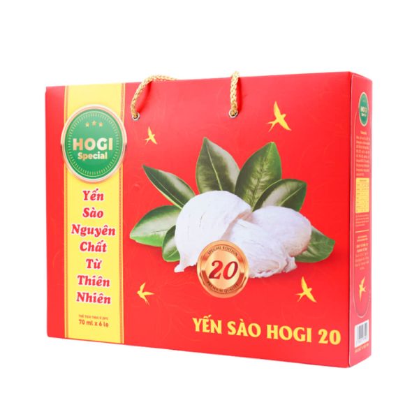 – Nước Yến Hogi có chứa 20% tổ yến giàu giá trị dinh dưỡng và được bổ sung canxi hỗ trợ xương chắc khỏe.
